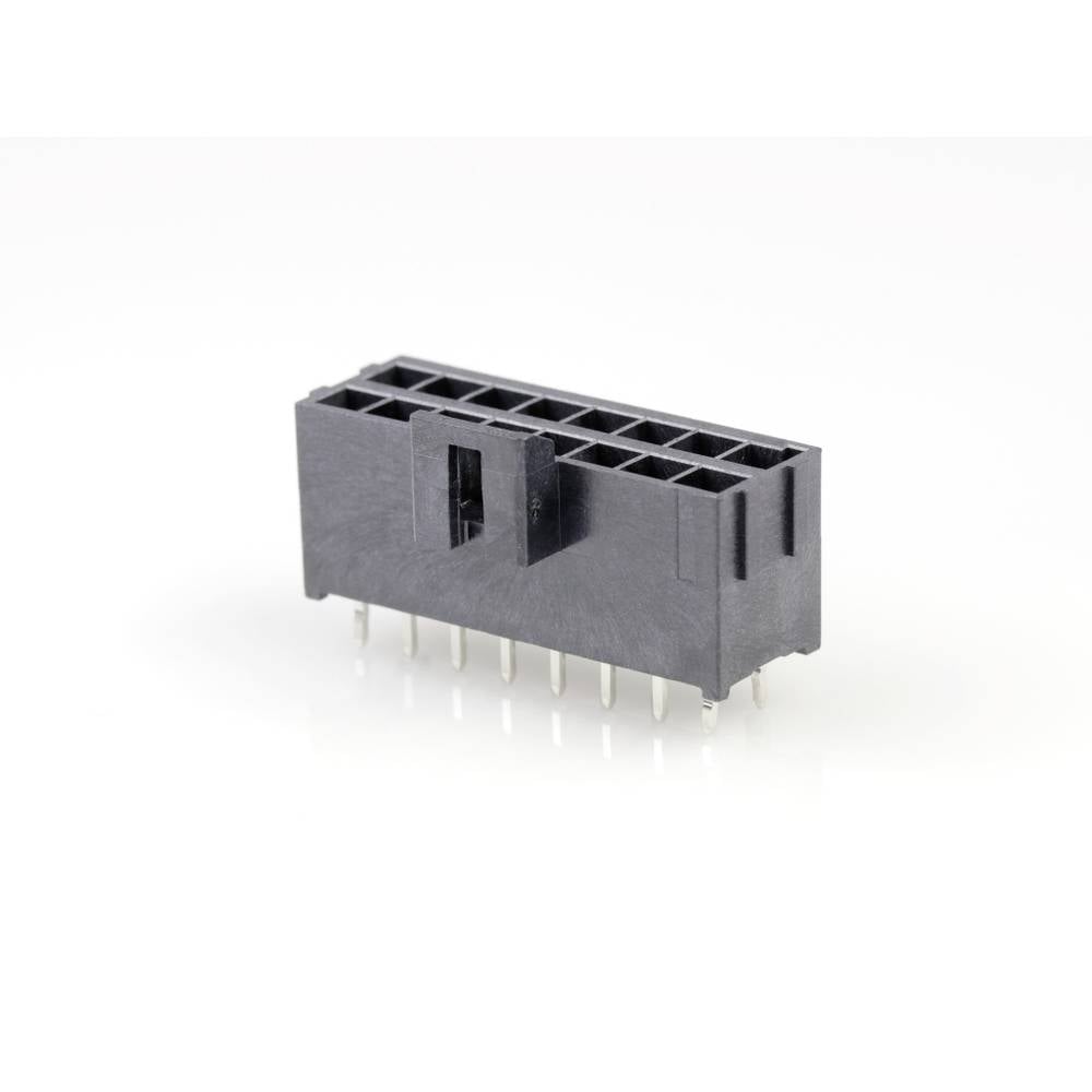 Ultra-Fit Vertical Header, 3.50mm Pitch, Dual Row, 16 Circuits, with Kinked Pins, Tin (Sn) Plating, Black, Glow-Wire Capable...