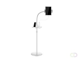- Vloerstandaard voor mobiele telefoon of tablet gemaak van aluminium en metaal - Geschikt voor 3,5 - 5,5 inch smartphone of 7-10 inch tablet - Zware voet voor stabiliteit en stalencontractie voor duurzaamheid - Hoogte telescopisch instelbaar van 68-173cm - 360 graden draaibaar - Met handig tafeltje voorzien van beker- telefoonhouder - Inclusief drie verschillende houders voor diverse maten telefoons, tablets (behalve 12-13 inch) of E-readers - Afmeting vloerplaat à 295mm