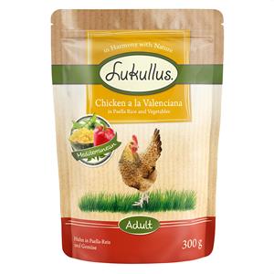 De typisch Spaanse ingrediënten, in combinatie met hoogwaardige dierlijke eiwitten en een scheutje van de beste olijfolie, helpen om je hond te voorzien van belangrijke voedingsstoffen en vitaminen. Geen conserveringsmiddelen, kleur- of smaakstoffen. De meeste ingrediënten worden voorzichtig verwerkt en koud gevuld om de goede smaak te behouden en de waardevolle voedingsstoffen te beschermen. Met veel malse kip en paella-rijst levert het Spaans-getemperde recept waardevolle eiwitten en vezels. In combinatie met smakelijke erwten en paprika voorziet Lukullus je hond van hoogwaardige vitaminen. De maaltijd wordt afgerond met de beste olijfolie en biotine, die een glanzende vacht en soepele huid kunnen ondersteunen. Lukullus vertrouwt op de kracht van de natuur.