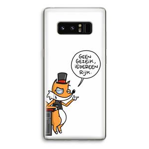 Geef jouw Samsung Galaxy Note 8 Transparant Hoesje die unieke look waar je al al die tijd naar op zoek bent. Ga daarom zeker een kijkje nemen in de uitgebreide CaseCompany collectie. Die barst van de unieke en schitterende designs van de hand van een team van regelrechte professionals. Dat team bestaat uit een select gezelschap van jonge gastdesigners en onze eigen grafische vormgevers. Zij kennen elke hedendaagse trend als hun broekzak en zijn op die manier uiterst geschikt om jouw Samsung Galaxy Note 8 Transparant Hoesje te ontwerpen. Je kan natuurlijk ook zelf voor designer spelen. Hiervoor verwijzen we jou graag door naar de ontwerp tool. In enkele muisklikken kan jij jouw favoriete afbeelding op een blanco Samsung Galaxy Note 8 Transparant Hoesje plaatsen. Volg daarna de eenvoudige stappen en bestel snel jouw smartphone hoesje in een handomdraai. Gemaakt uit flexibel schokbestendig TPU materiaal. Komt tot over de rand van je toestel voor een volledige bescherming.