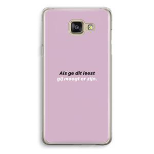 Pimp je Samsung Galaxy A5 met een Samsung Galaxy A5 hoesje van CaseCompany. We bieden je de mogelijkheid om te kiezen uit onze ruime collectie van transparante telefoonhoesjes. Prints, motiefjes, quotes, design en tekeningen, … we hebben voor ieder wat wils. Maar er is nog meer! Wil je graag een persoonlijke foto van je Instagramaccount op je Samsung Galaxy A5 hoesje laten drukken℃ Of is er die ene Facebookfoto die je altijd bij je wil hebben℃ Geen probleem. In enkele muisklikken kan je je eigen unieke telefoonhoesje voor Samsung Galaxy A5 ontwerpen met onze ontwerptool. Voeg naar eigen smaak gerust emoji's, teksten in een leuke font toe. Of giet een hoop foto's in een collage en plaats het allemaal op een telefoonhoesje. Je hebt eindeloos veel mogelijkheden! Gemaakt uit flexibel schokbestendig TPU materiaal. Komt tot over de rand van je toestel voor een volledige bescherming.