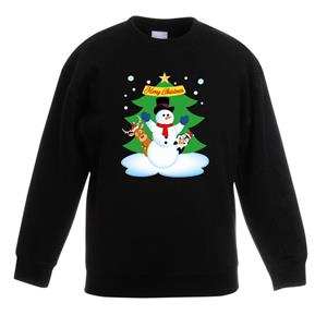 Kersttrui sneeuwpop en vriendjes zwart voor jongens en meisjes. De sweater is bedrukt met een afbeelding van een sneeuwpop en zijn dieren vriendjes. Materiaal: 80% katoen en 20% polyester (260 grams)