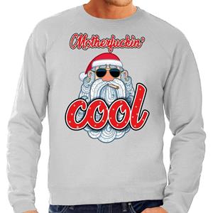 Grote maten foute Kersttrui motherfucking cool grijs voor heren. Deze grote maten Kerst trui / sweater is bedrukt met de afbeelding van een coole kerstman met zonnebril, een sigaret/joint en de tekst: Motherfuckin' Cool. Deze kersttrui / sweater / sweatshirt is van dun ongeborsteld katoen en heeft raglan mouwen. Het is dus geen dikke warme trui en kan prima gedragen worden op een kerstborrel of bij het gourmetten. Materiaal: 80% katoen/20% polyester, 240 grams kwaliteit.
