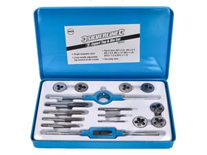 Sterk hardmetaal. Verstelbare snijmoerhouder met lang handvat en taphouder. Taps: M3 x 0,5, M4 x 0,7, M5 x 0,8, M6 x 1,0, M8 x 1,25. M10 x 1,5 en M12 x 1,75. Draagkoffer