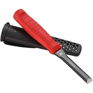 Bijzondere kenmerken:Een alledaagse beitel, scherp, betrouwbaar en altijd bij de hand. Klaar voor zwaar, precisie en allround gebruik, het aanpassen en passend maken tot losmaken en slopen. Perfect geslepen hoogwaardig Japans stalen beitel met heavy-duty handvat ontworpen voor harde hamerslagen. Doordachte holster met clip voor gemakkelijke toegang.Hoog-technologisch, Japans stalen mes.Roestbestendig (EPD).Heavy-duty handvat, geschikt om met een stalen hamer op te slaan.Doordachte holster voor bescherming en makkelijk te bereiken.Specificaties:Totale lengte (mm): 232Blad met beitelmessen (mm): 16