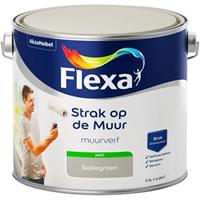 Flexa Strak Op De Muur Mat Saliegroen 2,5Lhelpt je muren eenvoudig en snel te voorzien van een matte muurverf. De muurverf is te gebruiken voor muren en plafonds binnenshuis, maar ook voor badkamers en keukens. De kleuren zijn kleurvast en blijven lang mooi, daardoor ben je verzekerd van een perfect en blijvend mooi eindresultaat.