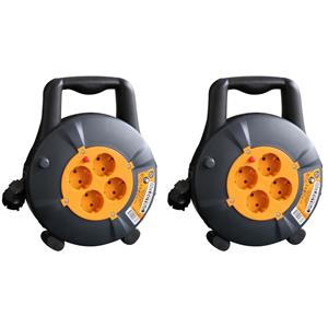2x Kabelhaspel 15 meter met 4 stopcontacten, Relectric serie. Deze kabelhaspels in de kleur zwart en oranje hebben een stevige behuizing. Deze haspels zijn geschikt voor gebruik binnenshuis en is voorzien van een randaarde. Aantal contacten: 4x stopcontacten. Lengte: 15 meter. Kabel: 3G1.0mm2. Max. stroom: 230V ~ 1100W (opgerold). Max. stroom: 230V ~ 2300W (uitgerold). Beschermingsgraad: IP20. Klus benodigdheden. U ontvangt 2 stuks.