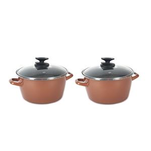 Set van 2x stuks rvs rose kookpan/pan met glazen deksel 20 cm 7 liter. Serie: Burgos.