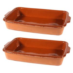 3x stuks terracotta ovenschaal/serveerschalen Pamplona 4 liter. Rechthoekige, bruine ovenschaal met een formaat van ca. 36 x 23 x 5 cm. Materiaal: aardewerk. Te gebruiken als tapas schaal, ovenschaal of als serveerschaal. Inhoud: ca. 4 liter. Geschikt voor oven, magnetron, en gasfornuis. Vaatwasmachine bestendig. Voor meer ovenschalen in deze serie zoekt u op: Pamplona. Tapas schalen/ovenschalen/bakvormen/braadsledes van aardewerk.