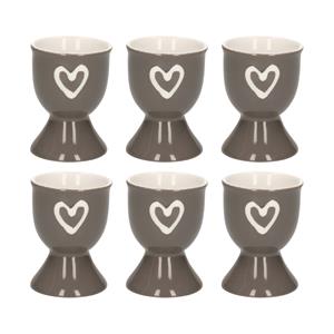 6x Eierdopje met hartje. Het eierdopje is in de kleur grijs en gemaakt van keramiek. Een mooi tafel accessoire bij het ontbijt of lunch. Formaat: ca. 6 x 5 cm. Materiaal: keramiek.