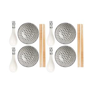 Geniet van een authentieke sushi-ervaring in het comfort van je eigen huis met onze 12-delige sushi servies set voor 4 personen. Deze elegante set, gemaakt van wit keramiek met een speelse opdruk, is perfect ontworpen om je favoriete sushi in stijl te serveren. Met de soep/kommetjes, soeplepels en stokjes is deze set perfect voor het serveren van sushi, bijgerechten en soepen, ideaal voor een speciale gelegenheid of een gezellige maaltijd thuis. - De chopsticks zijn perfect voor het traditioneel genieten van je sushi. - De soeplepels en kommen zijn perfect voor het serveren en genieten van miso-soep of andere Japanse soepen. Afmeting kommetje: ca. 11 x 6 cm. Afmeting lepels: ca. 14 x 4 cm. Materiaal: keramiek. Vaatwasbestendig.