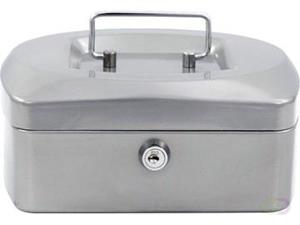 Uit metaal. Klein geldkistje voor geld en bankbiljetten. Uitneembaar compartiment met 8 opbergvakken voor onderdelen. Met cilinderslot. Twee sleutels inbegrepen. Ideaal als doos, kassa voor contant geld voor het huis, maar ook om contant geld in te zettenbij evenementen zoals een rommelmarkt, een lege loft (ideaal als kassa). Gewicht: 0,9 kg. Ft 20,5 x 16,0 x 9,0 cm. Kleur: zilver.