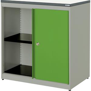 Schuifdeurkast, h x b x d = 830 x 800 x 432 mm, kunststof blad, 1 legbord, blank aluminiumkleurig / geelgroen / wit. Levering = gemonteerd. Breedte = 800 mm. Hoogte = 830 mm. Diepte = 432 mm. Kastkleur = blank aluminiumkleurig RAL 9006. Materiaal = staal, met poedercoating. Producttype = schuifdeurkasten. Type deur = schuifdeur. Deurkleur = geelgroen RAL 6018. Aantal deuren = 2 st. Aantal legborden = 1 st. Legbordkleur = grafietzwart RAL 9011. Draagvermogen per legbord = 44 kg. Eigenschap = afsluitbaar. Sluiting = draaicilinderslot met wisselkern incl. 2 sleutels. Aantal ordnerhoogtes = 2 st. Inwendige uitrusting = 1 legbord. Hoogwaardig kastenprogramma met een breed scala aan ontwerpmogelijkheden. Optimale ruimtebenutting door flexibel combineerbare varianten. Modern design met helder lijnenspel. De ruimtebesparende kast met lichtlopende schuifdeuren! Als er op kantoor weinig ruimte is, is deze kast de ideale oplossing. Hier verspert geen geopende kastdeur de weg. Perfect voor kleine opstelvlakken. Deuren: stalen schuifdeur, standaarduitvoering met zelfsluitend systeem en sluitdemping. Door gebruik van aluminium looprails glijden de deuren bijna geruisloos. Veilig draaicilinderslot met wisselkern, inclusief 2 sleutels. Kastframe: sterk, gelast stalen frame met hoogwaardige moffellak. Standaarduitvoering met stelpoten. Bovenblad kunststof gecoat, 25 mm dik, rand afgewerkt met ABS-kunststof. Inrichting: 1 stalen legbord, grafietzwart RAL 9011 gelakt voor 2 ordnerhoogtes, draagvermogen per legbord 44 kg. Levering gemonteerd. Gelijksluitend op aanvraag. N/A
