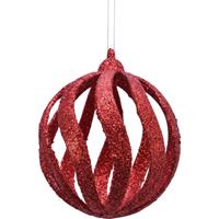 12x Open kerstballen rood met glitters 8 cm kunststof. Set van 12x rode open draad kerstballen. Kerst versiering/decoratie voor het optuigen van uw kerstboom.