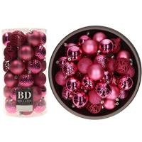 74x stuks kunststof kerstballen fuchsia roze 6 cm glans/mat/glitter mix. De set bevat een mix van matte, glitter, golf, cirkel en open kerstballen. Onze kerstballen worden standaard geleverd met ophanglintjes maar wij adviseren u om kerstbalhaakjes mee te bestellen. Kerstversiering/kerstboomversiering/boomversiering.