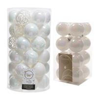 53x stuks kunststof kerstballen parelmoer wit 4 en 6 cm glans/mat/glitter mix. De set bevat een mix van matte, glitter, golf, cirkel en open kerstballen. Onze kerstballen worden standaard geleverd met ophanglintjes maar wij adviseren u om kerstbalhaakjes mee te bestellen. Kerstversiering/kerstboomversiering/boomversiering. , Dit artikel bestaat uit:, 1x Parelmoer witte kerstballen 4 cm kunststof mat/glans, 1x stuks kunststof kerstballen parelmoer wit 6 cm glans/mat/glitter mix
