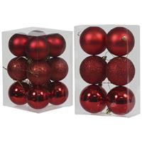 Kerstversiering kunststof kerstballen in kleur glans/mat/glitter mix rood pakket 6 en 8 cm van 36x stuks. Dit kerstboom versiering pakket bestaat uit 24x kerstballen 6 cm en 12x kerstballen 8 cm. Standaard geleverd met ophangdraadjes maar wij adviseren u om onze kerstbalhaakjes mee te bestellen (niet inbegrepen). , Dit artikel bestaat uit:, 2x Rode kunststof kerstballen 6 cm glans/mat/glitter, 2x Rode kunststof kerstballen 8 cm glans/mat/glitter