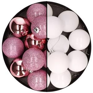 24x stuks kunststof kerstballen mix van roze en wit 6 cm kunststof mat/glans/glitter. Set van 24x onbreekbare kerstballen met ophanglintjes. Kerst versiering/decoratie voor het optuigen van uw kerstboom. Onze kerstballen worden standaard geleverd met ophangdraadjes maar wij adviseren u om onze kerstbalhaakjes mee te bestellen (niet inbegrepen). Materiaal: kunststof/plastic. Formaat diameter: 6 cm. , Dit artikel bestaat uit:, 1x Witte kerstballen 6 cm kunststof mat/glans, 1x Roze kerstballen 6 cm kunststof mat/glans