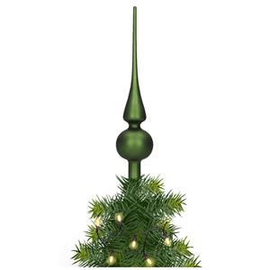Glazen kerstboom piek/topper dennengroen mat 26 cm. Formaat: ongeveer 6 cm diameter x 26 cm lang. Glazen kerstpieken/kerstboompieken.