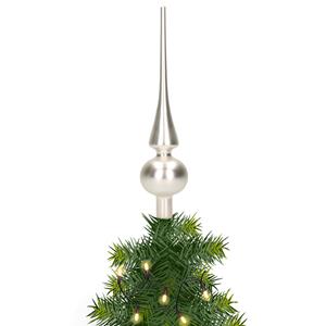 Glazen kerstboom piek/topper zilver mat 26 cm. Formaat: ongeveer 6 cm diameter x 26 cm lang. Glazen kerstpieken/kerstboompieken.