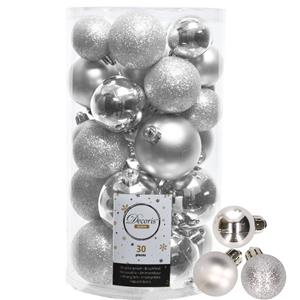 Decoris kerstballen 44x stuks zilver 3-4-5-6 cm kunststof. Mix van onbreekbare kerstballen in diverse maten. Wij adviseren u om kerstbalhaakjes mee te bestellen (niet inbegrepen). , Dit artikel bestaat uit:, 1x Zilveren kerstballen 4 - 5 - 6 cm kunststof mat/glans/glitte, 1x stuks kleine zilveren kunststof kerstballen 3 cm glans/mat/glitter