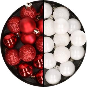 34x stuks kunststof kerstballen rood en wit 3 cm. Set van onbreekbare kerstballen in een mix van de kleuren rood en wit. Onze kerstballen worden standaard geleverd met ophanglintjes maar wij adviseren u om kerstbalhaakjes mee te bestellen. Kerstboomversiering mini kerstballen. , Dit artikel bestaat uit:, 1x stuks kleine kunststof kerstballen rood 3 cm mat/glans/glitter, 1x stuks kleine kunststof kerstballen wit 3 cm