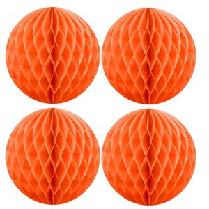 4x papieren kerstballen in het oranje met dia 10 cm. Kerstversiering voor in een boom of etalage. Papieren honeycomb bol kerstbal om op te hangen. De bol wordt geleverd met aangehecht koord van ca. 55 cm lang en bevat twee plakstrips waarmee u de bol vast kunt plakken na het uitvouwen. Indien u de bol vaker wenst te gebruiken kunt u deze ook vastzetten met paperclips (niet meegeleverd). De bol is gemaakt van brandvertragend crepe papier. U kunt deze bol natuurlijk ook gewoon als versiering ophangen bij verjaardagen of andere evenementen.