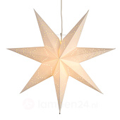 Hangende papieren ster met fantasierijk patroonDeze fraai gevormde, zevenpuntige ster heeft een diameter van 54 cm en is zowel een mooie raamdecoratie als een fraaie versiering voor uw woonruimte tijdens de winter- en kerstperiode. Deze lamp is voorzien van een geïntegreerde E14 fitting met stroomkabel. Een geschikte lamp kan via de accessoires worden besteld. Het wordt niet meegeleverd.