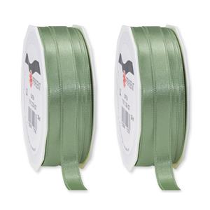 2x Luxe hobby/decoratie lichtgroene satijnen sierlinten 1 cm/10 mm x 25 meter. Lichtgroene satijnlint op rol. Dit lint is gemaakt van een luxe kwaliteit satijn. Aantal rollen: 2x stuks. Formaat per lint: 1 cm/10 mm breed, in totaal 25 meter lang. Hobby/DIY basismaterialen - Hobbymateriaal benodigdheden satijnlint voor het maken van decoraties of het verpakken van cadeautjes - Cadeauverpakkingen cadeaulint/ribbon satijn verpakkingsmaterialen - Cadeaulint/kadolint - Cadeaulinten/kadolinten - Striklint/striklinten.
