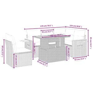 Deze loungeset is de perfecte aanvulling op je tuin of terras en biedt een comfortabele en uitnodigende ruimte om met familie en vrienden te kletsen of gewoon buiten te ontspannen en te genieten. Duurzaam materiaal: PE-rattan, ook wel poly rattan genoemd, is een sterke, onderhoudsarme kunststof die lijkt op natuurlijk rattan. Het is licht van gewicht en gemakkelijk schoon te maken en wordt vaak gebruikt voor tuinmeubelen vanwege de duurzaamheid en weerbestendige eigenschappen.Verstelbaar tafelblad: het tafelblad kan worden opgetild om de tafel te verhogen en hem te veranderen van een salontafel in een eettafel. Hij is perfect om gasten te ontvangen of buiten te eten.Handige bijzettafel: dit tuinmeubel beschikt over een inklapbare bijzettafel met een gasveer op de armleuningen, waardoor je een handige plek hebt om je benodigdheden binnen handbereik te houden.Afneembare en wasbare hoes: deze zitkussens hebben afneembare hoezen, waardoor ze eenvoudig te wassen en te onderhouden zijn.Modulair ontwerp: deze tuinmeubelset heeft een modulair ontwerp, waardoor hij volledig flexibel en gemakkelijk te verplaatsen is. Op die manier kun je een opstelling van tuinmeubilair creëren. Goed om te weten:Om de levensduur van je tuinmeubelen te verlengen, raden wij je aan om de meubelen met een waterbestendige hoes af te dekken. Draagvermogen (per zitplek): 110 kg Uv-bestendig Verstelbare kunstof voetjes Montage vereist: ja Middelste stoel: Kleur: grijs Materiaal: PE-rattan en gepoedercoat staal Afmetingen: 55 x 62 x 69 cm (B x D x H) Afmetingen zitting: 55 x 55 cm (B x D) Zithoogte vanaf de grond: 37 cm Hoekzitting: Kleur: grijs Materiaal: PE-rattan en gepoedercoat staal Afmetingen: 62 x 62 x 69 cm (B x D x H) Afmetingen zitting: 55 x 55 cm (B x D) Zithoogte vanaf de grond: 37 cm Bank met acaciahouten armleuning: Kleur: grijs Materiaal: PE-rattan, gepoedercoat staal en massief acaciahout met olieafwerking Afmetingen: 62 x 62 x 69 cm (B x D x H) Afmetingen zitting: 55 x 55 cm (B x D) Zithoogte vanaf de grond: 37 cm Hoogte armleuning vanaf de grond: 55 cm Afmetingen bijzettafel: 24,5 x 23,5 cm (L x B) Tafel: Kleur: grijs Materiaal: PE-rattan, gepoedercoat staal en massief acaciahout met olieafwerking Afmetingen: 100 x 55 x 44/73 cm (L x B x H) Kussen: Kleur: donkergrijs Materiaal hoes: stof (100% polyester) Materiaal vulling zitkussen: schuim Vulling rugkussen: katoenvezel Afmetingen zitkussen: 55 x 55 x 3 cm (B x D x D) Afmetingen rugkussen: 55 x 45 x 13 cm (L x B x D) Levering bevat: 1 x tuintafel 1 x hoekbank 2 x middenbank 2 x bank met acaciahouten armleuning 6 x rugkussen 5 x zitkussen met afneembare en wasbare hoes