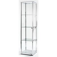 Zuilvitrine, hoogte 2000 mm, 1 draaideur, b x d = 400 x 400 mm, roestvast stalen uiterlijk. Levering = gemonteerd. Hoogte = 2000 mm. Breedte = 400 mm. Diepte = 400 mm. Glasmateriaal = veiligheidsglas. Framemateriaal = aluminium. Framekleur = roestvast stalen uiterlijk. Aantal legborden = 3 st. Legbordmateriaal = veiligheidsglas. Aantal glasdeuren = 1 st. Glasdikte = 4 mm. Deurdikte = 5 mm. Type deur = 1 draaideur. Sluiting = veiligheidscilinderslot met 2 sleutels. Draagvermogen per legbord = 15 kg. Verlichting = zonder verlichting. Legborddikte = 6 mm. Fijn afgewerkt aluminium frame dikte 25 x 25 mm voor een fraai design. Traploos verstelbare glazen ESG-legborden - ESG-veiligheidsglas conform DIN 1249 . Zeer goede, veilige stand door 4 in hoogte verstelbare voeten. Aan 5 zijden voorzien van 4 mm dik glas, draaideuren 5 mm dik. Verlichting als toebehoren: gelijktijdig meebestellen, montage achteraf is niet mogelijk. Levering gemonteerd. Op aanvraag leverbaar Speciale uitvoeringen en/of poedercoating in andere RAL-kleur, energiebesparende ledverlichting alsook extra legborden. Tegen meerprijs kunnen de vitrines voor mobiele doeleinden worden uitgerust met zwenkwielen. N/A