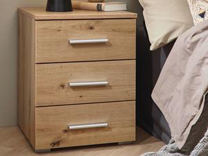 Op zoek naar een nieuw, trendy nachtkastje℃ Stop dan maar jouw zoektocht, want nachtkastje IXANA is perfect voor jou! Het minimalistisch design, in combinatie met de neutrale kleur, zorgt voor een elegant geheel. Dankzij de 3 lades heb je heel wat plaats voor jouw belangrijkste spulletjes. Gemaakt in Duitsland, garandeert de IXANA-collectie stevigheid, kwaliteit én een lange levensduur! Kleine tip; combineer nachtkastje IXANA met het bijpassende tweepersoonsbed en geniet van een gezellig geheel!