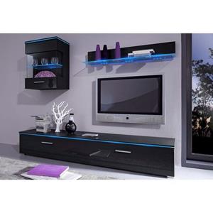 3-delig wandmeubel in voordeelsetZeer modern wandmeubel met leuke lichteffecten. In 3 kleuren: zwart, grijs of wit met hoogglanzende fronten. Achterwandpaneel mat. Kleppen met reminrichting.