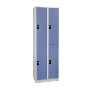 Garderobekast, 4 vakken, breedte 600 mm, lichtgrijs / duifblauw. Levering = gemonteerd. Hoogte = 1800 mm. Diepte = 500 mm. Breedte = 600 mm. Kastkleur = lichtgrijs RAL 7035. Deurkleur = duifblauw RAL 5014. Sluiting = veiligheidscilinderslot, verschillend sluitend. Aantal afdelingen = 2 st. Aantal vakken = 4 st. Afdelingsbreedte = 300 mm. Materiaal = plaatstaal. Afdelingshoogte = 1800 mm. Inwendige uitrusting = 1 kledingstang, 3 haken. Inwendige breedte = 298 mm. Inwendige hoogte = 820 mm. Inwendige diepte = 475 mm. Type deur = gladde deurfronten. Aantal sleutels = 2 st. Vakhoogte = 820 mm. Vakbreedte = 300 mm. Vakdiepte = 500 mm. Sokkelhoogte = 100 mm. Constructie = gelast. Oppervlak = gemoffeld. Randloze binnenvakken voor probleemloze reiniging. Ventilatie door perforaties in de achterwand. Geluidsarme deuraanslag door rubberen doppen. Stevige plaatstalen constructie met veiligheidsrandomzettingen. Hoogwaardige moffellak. Sokkelhoogte 100 mm. Gladde deurfronten met dicht, omgezet verstevigingsprofiel. Standaarduitvoering met veiligheidscilinderslot, verschillend sluitend, incl. 2 sleutels. Levering gemonteerd.