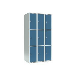 Lockerkast Fydor, 3 vakken, lichtgrijs / briljantblauw, b = 900 mm, 3 compartimenten, platte bovenkant, hangslot. Levering = gemonteerd. Uitvoering = platte bovenkant. Hoogte = 1752 mm. Diepte = 550 mm. Breedte = 900 mm. Kastkleur = lichtgrijs RAL 7035. Deurkleur = briljantblauw RAL 5007. Sluiting = draaivergrendeling met voorziening voor hangslot. Aantal afdelingen = 3 st. Aantal vakken = 3 st. Afdelingsbreedte = 300 mm. Materiaal = staal, met poedercoating. Type deur = vleugeldeur. Aantal sleutels = 2 st. Constructie = gelast. Oppervlak = gelakt. Sterke garderobekast met een grote keuze aan afmetingen, kleuren en toebehoren. Perforaties voor optimale ventilatie. Duurzame functionaliteit dankzij gepoedercoat staal. Ideaal voor magazijnen, werkplaatsen, sportclubs, openbare faciliteiten en nog veel meer. Verschillende dakvormen en afsluitopties. Twee sleutels per slot. Met de Fydor-serie krijgt u een klassieke maar moderne volledig gelaste kledingkast. De kast maakt indruk met zijn hoge kwaliteit en veiligheid. Volledig gelast frame met gladde bodem maakt de kast gemakkelijk te reinigen. Perforaties voor ventilatie aan de zijkanten en sleuven onder en boven de deur zorgen voor een goede luchtstroom. De lockerdeuren zijn voorzien van dubbele verstevigingen in de lengte, rubberen stootranden en gelaste deurstoppen om bestand te zijn tegen dagelijkse slijtage. Een praktische en betaalbare lockerkast voor uw kleedruimte of pauzeruimte die u helemaal aan uw wensen kunt aanpassen. Kies uit verschillende afmetingen, combinaties, kleuren, sokkels en kasttoebehoren. Als u in ons standaardassortiment niet vindt wat u zoekt, neem dan contact op met onze klantenservice. Wij helpen u graag om alternatieven te vinden die passen bij uw behoeften.