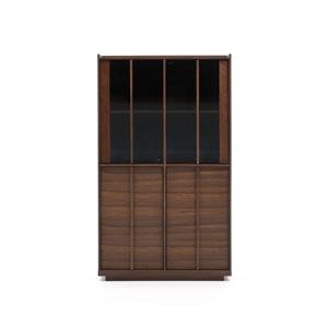 Kave Home Vitrinekast Onix Notenhout, 170 x 100cm Onix combineert minimalisme met een eigentijdse esthetiek, die rust en kalmte oproept. De details doen denken aan Shoji-deuren; de donkere afwerking van eikenhout geeft warmte en veiligheid. * Vitrinekast gemaakt van massief notenhout, notenfineer in donkere afwerking en gerookt gehard glas. * 4 deuren met soft closing-systeem en verstelbare scharnieren. De legplanken aan de binnenkant zijn verstelbaar om de opbergruimte aan te passen. * Bovenste deel met deuren en legplanken van gehard glas en onderste deel met deuren en legplanken van notenfineer. * FSC Mix Credit-gecertificeerd hout bestaat uit een mix van materialen uit bossen die zijn gecertificeerd door FSC en hout dat gecontroleerd wordt door FSC. * Met verstelbare poten aan de onderkant voor stabliteit op oneffen vloeren. Eigenschappen: * Merk: Kave Home * Materiaal: Massief notenhout, notenfineer en rookglas * Breedte: 100 cm * Diepte: 40 cm * Hoogte: 170 cm