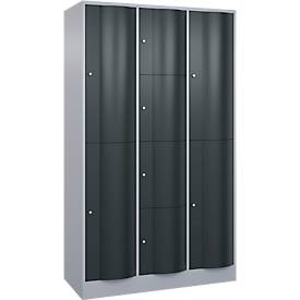 Maandagochtend in de sportschool: met de C+P Resisto combikast verandert u de kleedkamer in een efficiënt fort. Sporters kunnen hun waardevolle spullen in een handomdraai opbergen en na de training moeiteloos nieuwe kleren pakken. Soepele werking gegarandeerd. Ongeëvenaarde robuustheid voor maximale prestaties De C+P Resisto-combikast wordt gekenmerkt door zijn uitzonderlijke stabiliteit. De speciale deuren van 1,5 mm staal met voorwaartse kromming zijn zelfs bestand tegen extreme belastingen. Het robuuste espagnoletscharnier zorgt voor een lange levensduur bij intensief gebruik. Geoptimaliseerde organisatie voor maximale efficiëntie Met drie compartimenten en in totaal negen vakken past de Resisto zich flexibel aan je behoeften aan. Kies uit twee dieptevarianten: De bijzonder ruime 640 mm diepe versie kan zelfs volumineuze sporttassen gemakkelijk aan, terwijl de 540 mm versie een ruimtebesparend alternatief is. De geïntegreerde niveau-instelling maakt een nauwkeurige uitlijning mogelijk, terwijl de gesloten plint het schoonmaken vereenvoudigt. Verfijnde details voor superieure functionaliteit Elk element van de Resisto is ontworpen voor maximale prestaties. De ventilatieopeningen in de achterwand zorgen voor een optimale luchtcirculatie. De deuropeningbegrenzer met softstopdemper beschermt tegen overstrekken en overlapping met deuren van aangrenzende kasten en zorgt voor een stille werking. Met wel 6000 verschillende vergrendelingsopties zijn de persoonlijke bezittingen van je klanten altijd veilig. Body: Robuuste stalen behuizing H 1950 x B 1148 mm Diepte: 540 of 640 mm 100 mm hoge plint 30 mm niveau-aanpassing 20 mm afstandhouder Deuren: 1,5 mm stalen constructie Gebogen naar voren Vandalismebestendig Scharnierend aan de rechterkant 80° deuropeningsbegrenzer Soft stop demper Uitrusting: 3 vakken (2 + 5 + 2 vakken) Ovale kapstok per groot vak 3 verdraaiingsvrije schuifhaken Ventilatiegatenpatroon in achterwand 9 draaicilindersloten 2 sleutels per slot Meer details: Tot 6000 verschillende sloten Diverse kleurencombinaties beschikbaar Ideaal voor grote sporttassen Eenvoudig reinigen van de vloer mogelijk Geschikt voor zwaar gebruik