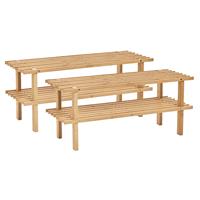 Set van 2x stuks bamboe houten schoenenrek 2-laags. Schoenenstandaard/rek van bamboehout met ruimte voor ca. 6 paar schoenen per rek. Gemakkelijk in elkaar te zetten, wordt geleverd incl. gebruiksaanwijzing. Formaat: ca. 70 x 26 x 30 cm.