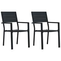 Deze set van 2 tuinstoelen in een compact maar modern ontwerp is een fantastische toevoeging aan je tuin, terras of patio. Bestel vidaXL Tuinstoelen 2 st hout-look HDPE zwart