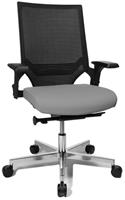 Bijzondere kenmerken * Met punt-synchroon-techniek (met armleuningen). * Voor overwegend zittend werk. * Aluminium voetkruis gepolijst. * Rugleuning met ademende netbespanning zwart, met in hoogte verstelbare lendensteun. * Hoogte en hoek rugleuning traploos instelbaar. * Zitting in hoogte verstelbaar. * Ergonomische komzitting met zitdiepteverstelling. * Bekleding 100 % Trevira CS. * Zitting B 450 x D 440 mm. * Leuninghoogte 560 mm. * Wielen voor zachte vloeren. * Levering in gedemonteerde toestandTechnische gegevens * Vullingkleur: Zwart/lichtgrijs * Zithoogteverstelling: 420-550 mm * Draagvermogen: 110 kg * Stoelbreedte: 480 mm * Uitrusting: Met armleuningen * Zitdiepte: 460 mm * Merk: Topstar * Uitvoering: Met puntsynchroontechniek * Leuninghoogte: 560 mm