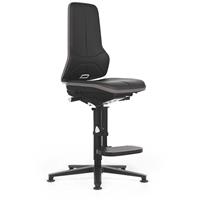 NEON werkdraaistoel, met voetdoppen en opstaphulp, materiaal zitting kunstleer, ESD, flexband grijs. Levering = ongemonteerd. Frame-uitvoering = met voetdoppen en voetsteun. Zitmechanisme = synchroon-mechanisme met gewichtsregeling, zithoekverstelling. Materiaal zitting = kunstleer. Kleur zitting = zwart, grijs. Soort hoogteverstelling = gasveer. Framemateriaal = aluminium. Hoogteverstelling = 590 - 870 mm. Zitbreedte = 470 mm. Zitdiepte = 420 - 480 mm. Soort armleuningen = zonder armleuningen. Voetdiameter = 700 mm. Draagvermogen = 120 kg. Framekleur = zwart. Eigenschap = ESD-geschikt. Producttype = werkdraaistoelen. Zachte bekleding van kunstleer gegarandeerd maximaal zitcomfort. Afwasbaar, onderhoudsvriendelijk, bestand tegen desinfecterende middelen, gemakkelijk te reinigen. Elektrisch geleidend. Zitting met profiel, taps toelopende rugleuning. Gemakkelijk te reinigen, ongevoelige oppervlakken en materialen. Compleet ergonomiepakket, zithoekverstelling, synchroon-mechanisme. Functies snel instelbaar. Hoge veiligheids- en ergonomiestandaarden. Flexibel bekledingswisselsysteem. Flexband dient als kantbescherming. Maximale aanpassingsmogelijkheid bij gelijkblijvende ergonomie. Opstaphulp. Werkdraaistoel met synchroon-mechanisme en ergonomiepakket. Gasveer-hoogteverstelling van 590 - 870 mm. Aluminium voetkruis met voetdoppen en opstaphulp, kleur zwart. Voetdiameter 700 mm. Zithoekverstelling 0 tot +9°. Zitting en rugleuning met kunstlederen bekleding, zwart. Flexband verkrijgbaar in de kleuren grijs, groen en oranje. N/A