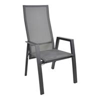 Deze heerlijke stoel heeft een Aluminium frame met een zitting en rugleuning van textileen. Hierdoor heeft deze stoel een heerlijke comfortabele zit. Deze stoel is ook nog eens verstelbaar door middel van 1 druk op de knop. Door deze knop in te drukken gaat de rugleuning langzaam naar achter, deze leuning werkt door een gasveer. Eigenschappen: Aluminium frame met textileen zitting Verstelbaar Afmeting 60 x 70 x 112 cm Onderhoudsvriendelijk