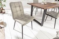 Afmeting : (H x B x D) 87 cm x 43 cm x 58 cm Zit : (H x B x D) 49 cm x 43 cm x 40 cm Kleur : lichtgrijs, zwart Materiaal : Bekleding: microvezel (100% polyester) Poten: metaal, gepoedercoat Levertijd : 1 - 3 weken (onder voorbehoud) Een stoel voor elke sfeer Tijdloos design en hoog zitcomfort ontmoeten elkaar hier! De MODENA stoel maakt indruk met een eenvoudige uitstraling die op verschillende manieren prachtig kan worden gecombineerd. De comfortabele zitschaal is comfortabel gestoffeerd en over het hele oppervlak versierd met opvallende quilts. De zwarte poten in retrostijl zorgen voor een harmonieus contrast en zorgen voor een veilige stand op elke ondergrond. Een echt combinatietalent Door de onopvallende kleurencombinatie en het puristische design combineer je de stoel gemakkelijk met een grote variatie aan tafels, kasten en woonaccessoires. Eettafels die ook nog eens zwart metalen poten hebben of een hanglamp in een industriële look die je nieuwe stoelen laat stralen, gaan hier natuurlijk bijzonder goed uit.