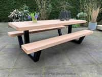 I.v.m. de breedte van de picknicktafels worden de stalen poten altijd los van het tafelblad en de bladen van de bankjes geleverd. Deze zijn gemakkelijk met de bijgeleverde schroeven weer te monteren.