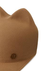 Camel, wolvilt, logo plakkaat, pop-up dierenoren, ronde bovenkant en platte rand.