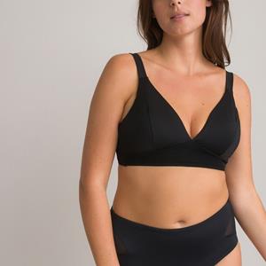 Details • Bikini-BH • Foulard • Vaste, verstelbare schouderbandjes • Uitneembare binnencups • Zonder beugels • Haakjes achteraan • Effen • Grote Maten badmodeSamenstelling en onderhoud • Voornaamste stof : 85% polyester, 15% elasthan • Voering cups : 100% polyester • Voering vooraan : 80% polyamide, 20% elasthan • Vulling : 100% polyurethaan • 2de stof : 94% polyamide, 6% elasthan • Machinewas op 30° delicaat programma • Niet strijken / geen bleekmiddel • Niet drogen in de droogtrommel • Geen droogkuis • RECYCLED POLYESTER. Het gebruik van recycled polyester betekent het behoud van hulpbronnen en vermindering van afval. • OEKO-TEX Standard 100. Het OEKO-TEX Standard 100 certificaat controleert textielproducten op schadelijke stoffen via een onafhankelijk, internationaal label.