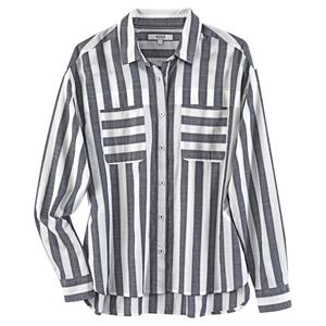Aigle Dames blouse Eloar - De hoogwaardige damesblouse met maritiem streeppatroon maakt van elke outfit een eyecatcher. Het lichte oversized model maakt deze blouse bijzonder comfortabel en casual om te dragen. Met fijne knoopjes in parelmoer-look. Ronde zoom en verstelbare mouwen. Bestelt u a.u.b. een maat groter dan gewoonlijk.