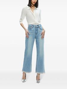 lichtblauw katoen denim verfraaid met kralen verfraaid met imitatieparels high waist riemlussen verborgen rits- en knoopsluiting traditioneel vijf zakkenmodel wijde pijpen