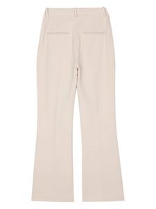 zandbeige stretch-katoen jersey textuur geperste vouw ingenaaide zijzak wijde pijpen twee achterzakken met knoopsluiting verborgen rits-, haak- en knoopsluiting aan de voorkant