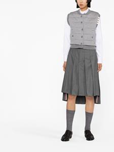 Lichtgrijs, wit, merinowol, ribgebreid, omkeerbaar, kenmerkende 4-Bar streep, logopatches aan de voorkant, doorgestikte voering, drukknoopsluiting aan de voorkant, bandkraag, mouwloos en rechte zoom.